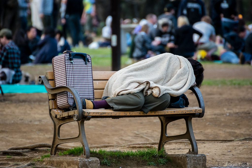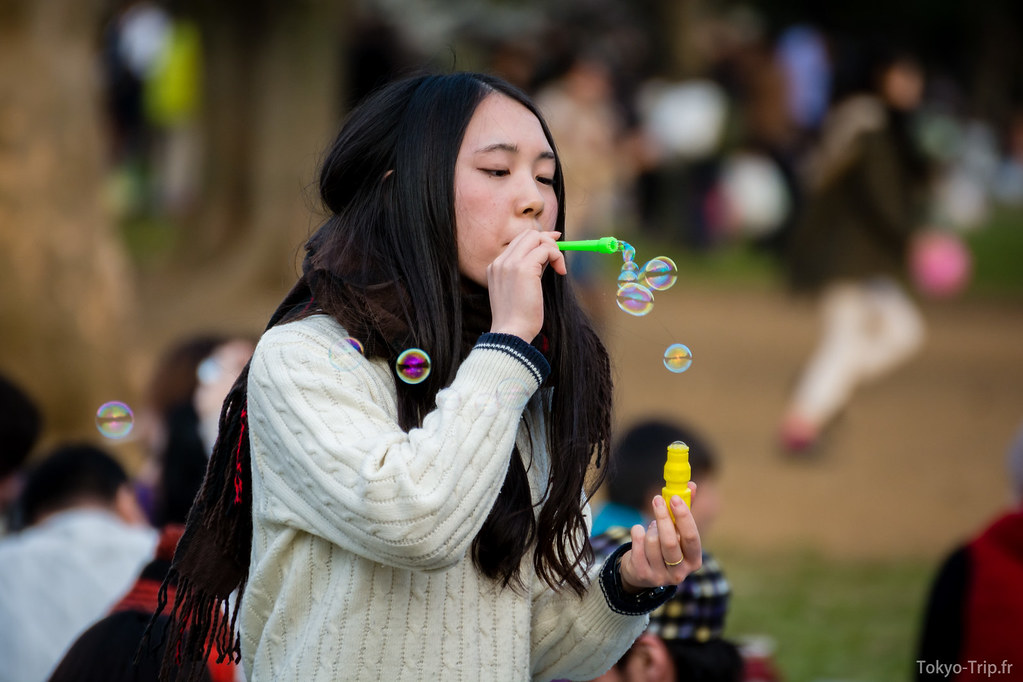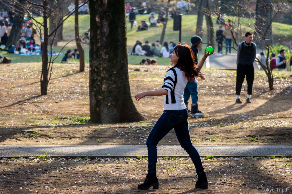 Fin mars est la période des Hanami, les parcs sont donc pleins du matin au soir de personnes venues pique-niquer, discuter, chanter, faire du sport ou tout simplement boire et manger.